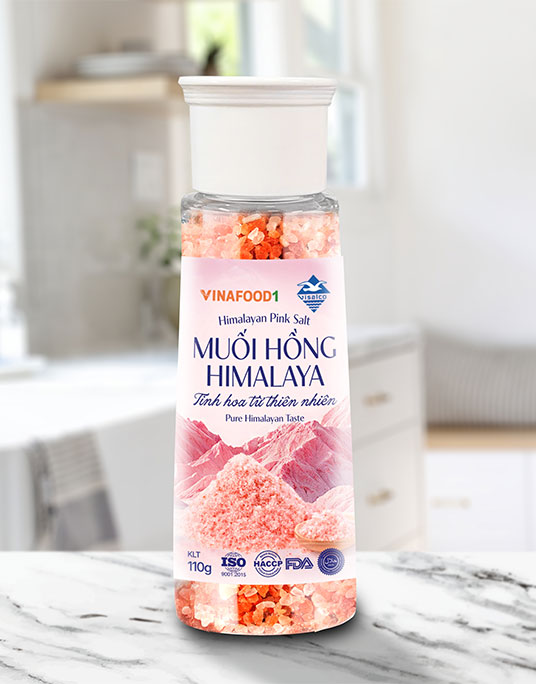 Sản phẩm Muối hồng Himalaya 110g của Vinafood1 – Visalco được đóng gói tiện lợi trong chai xoay cao cấp, phù hợp cho mọi gian bếp hiện đại, giúp người tiêu dùng dễ dàng sử dụng để nêm nếm, rắc lên món ăn hoặc dùng trực tiếp trong các bữa ăn lành mạnh.